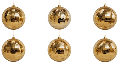 A set of gold trophies with a globe design on top, arranged in various heights, isolated on transparent background, PNG file.