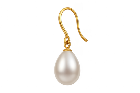 Elegant baroque pearl earring with gold hook isolated on transparent background