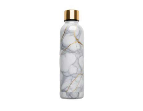 White cosmetic bottle with gold label on a transparent background