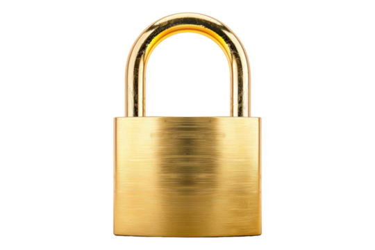 Golden padlock isolated on transparent background