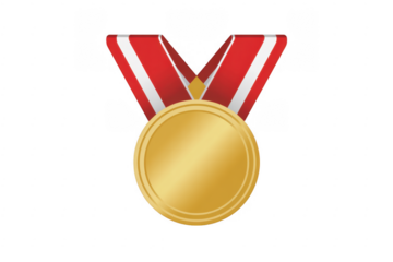 Gold medal with red ribbon prize winner isolated on a transparent background