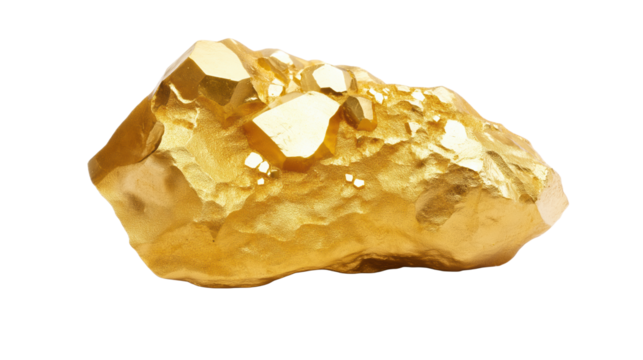 Gold nugget isolated on transparent background.