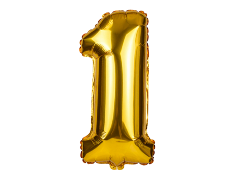 Bright Metallic Gold Foil Balloon Number 1 Isolated on White Background