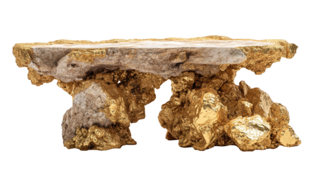 Shiny gold stone or rock isolated on transparent background, symbolizing luxury marble with golden surface texture, ideal for high-end decor and gemstone themes.