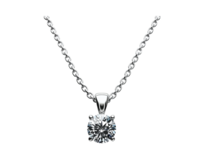 diamond solitaire necklace silver or platinum or white gold overlay for photograph isolated transparent background