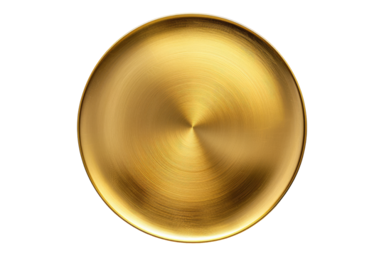 A gold plate with a shiny, metallic finish, exuding elegance and luxury, perfect for upscale dining or decorative display isolated on white background or transparent png