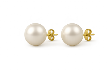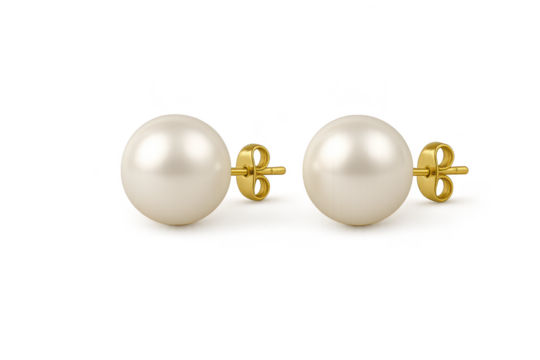 Elegant pearl stud earrings with golden posts isolated on transparent background