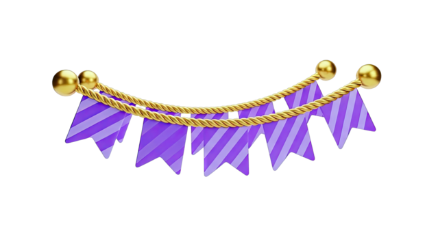 Purple Striped Bunting with Gold Rope and Balls