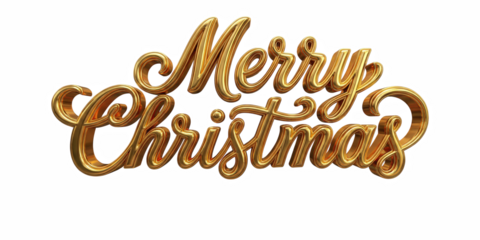 Elegant Merry Christmas golden calligraphy script. Festive 3D lettering for holiday greetings, cards, and decorations. Luxurious typography isolated on a transparent background for easy use.