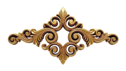 Ornate gold scrollwork element with swirling tendrils, providing a decorative baroque design on transparent background