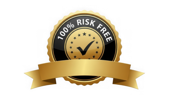 100 percent risk free gold seal label on transparent background