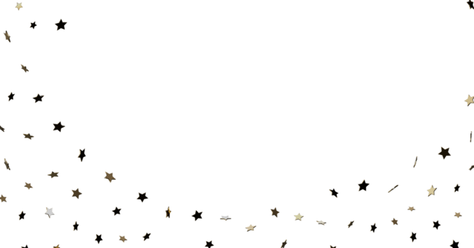 Gold and white star confetti on a black silhouette border