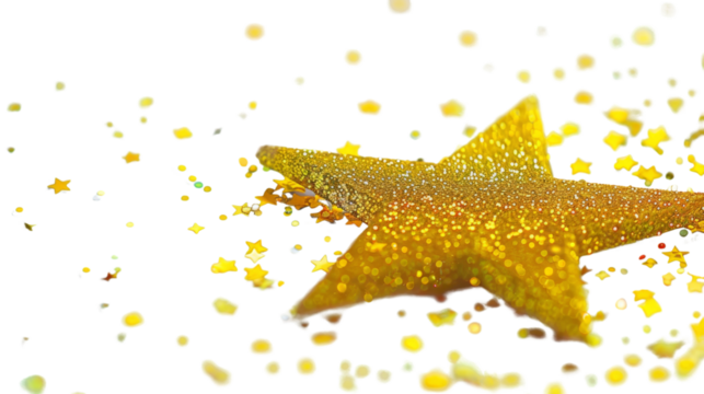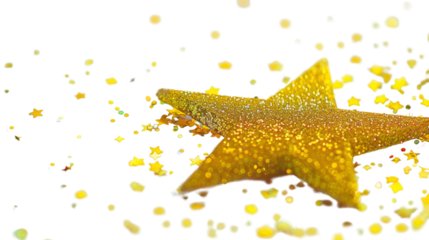 Gold glitter star on transparent background