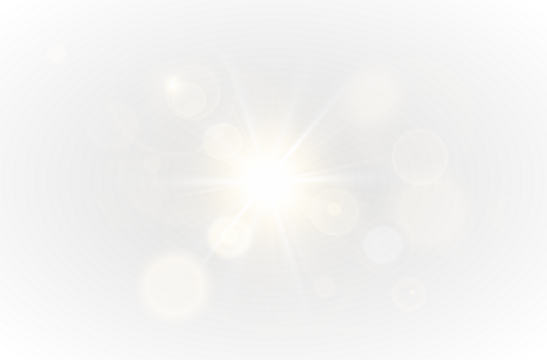 Yellow star flashed with sparkles sun isolated on white background. Soft glow without departing rays, sunlight with lens flare effect. PNG vector light effect.