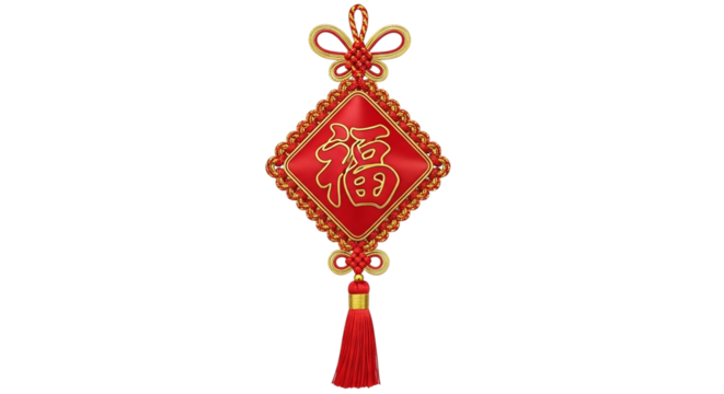 Red chinese lantern with gold symbol isolated on transparent background