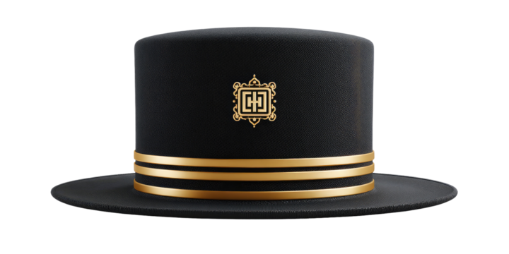Elegant Red Velvet Pirate Captain Hat with Gold Trims, isolated on transparent background