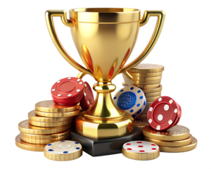 gold trophy cup with gold coins
