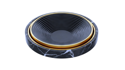 Isolated gold cloche on dark gray plate with ornate decorations in elegant style