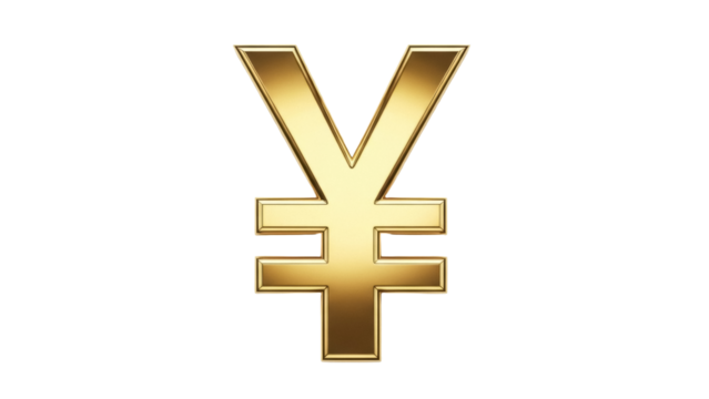 Golden yen symbol isolated PNG, currency sign for finance, banking, and international trade on transparent background, financial icon