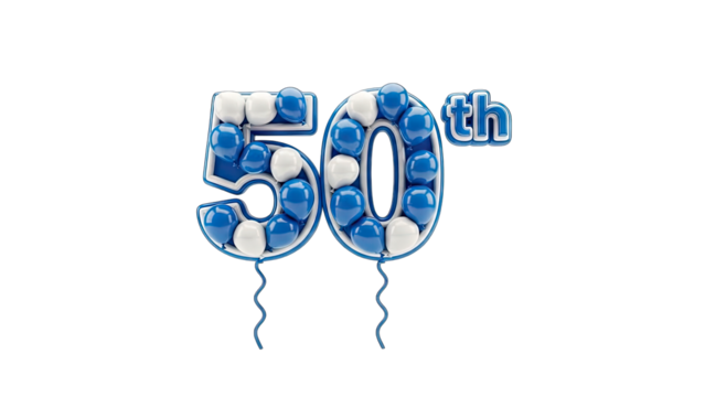 Celebratory blue 50 number on transparent background