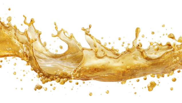 Golden liquid splashing creating an arc shape