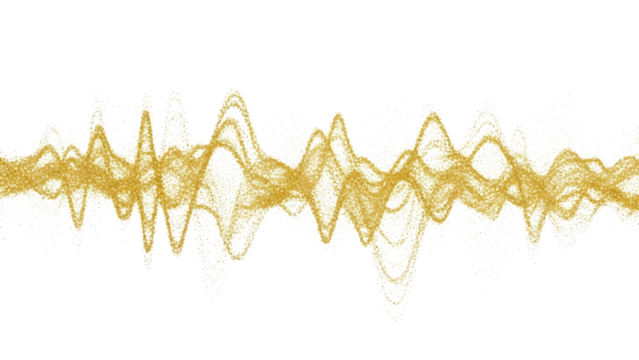 Dynamic visualization of a golden particle frequency wave on a solid black backdrop isolated on transparent background