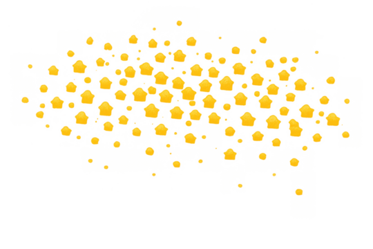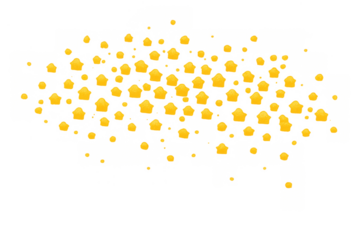 Falling golden star confetti particles creating a festive background with sparkling elements on a transparent backdrop