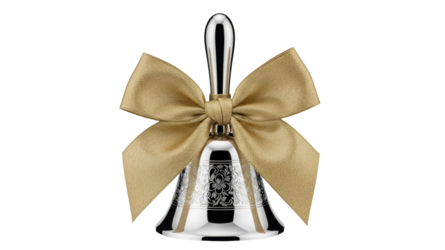 Golden bell on transparent background with intricate detailing