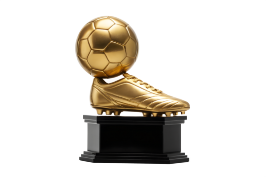 Golden football boot and ball trophy, a symbol of achievement and victory in the world of soccer and sports awards