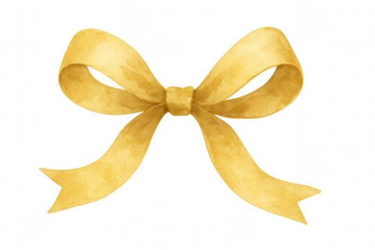 Gold watercolor bow creating festive gift wrap decoration, celebrating holidays, birthdays, or special events, on transparent background