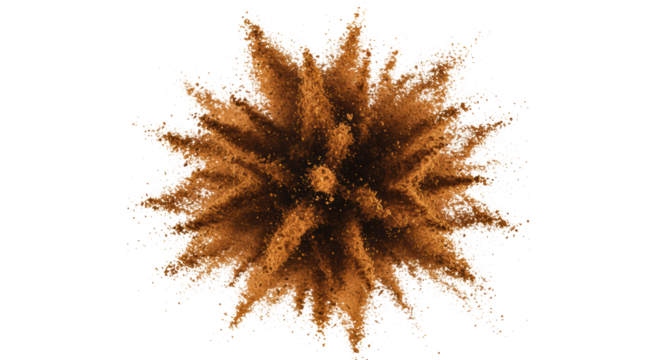 Ultra-detailed macro close-up of golden brown light roasted espresso powder erupting dramatically in a dynamic plume shape against a transparent void, high-key lighting, concept for beverage