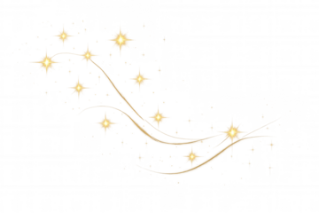 Golden light effect with twinkling stars and glitter particles forming an abstract luminous curl. Transparent background