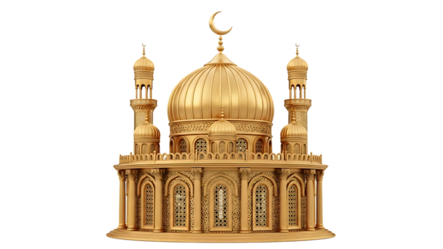 Golden Dome Mosque with Crescent Moon on transparent background