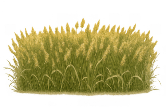 Wild tall grass with green and golden hues, growing in a dense line, providing natural vegetation detail on a transparent background
