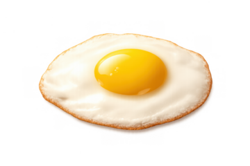 Fried egg in sunny side up style with warm golden lighting on white background for breakfast menu isolated on transparent background