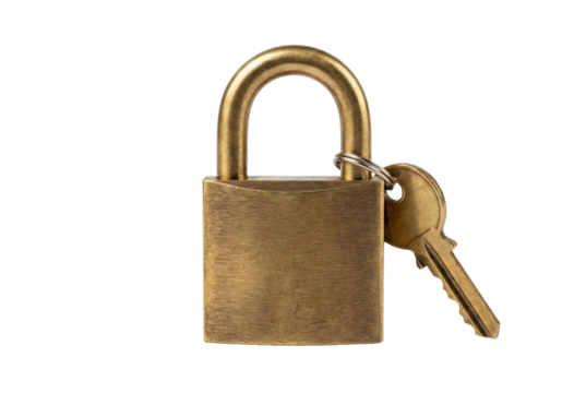 Golden metal padlock securing heavy-duty hinges, symbolizing robust protection against unauthorized access