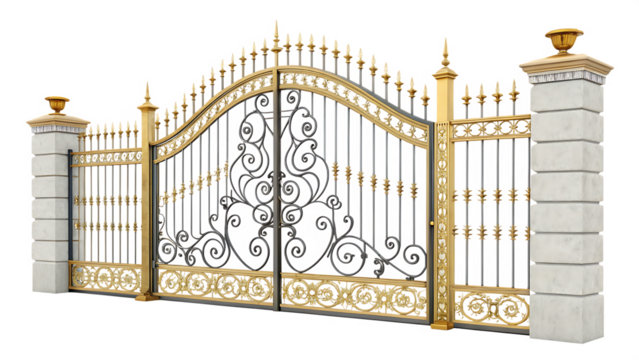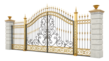 Luxury Wrought Iron Gate - Gold & Black Design - Isolated on White Background as Transparent. PNG. AI GENERATED