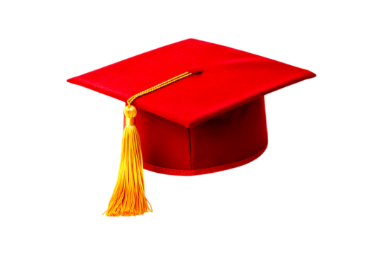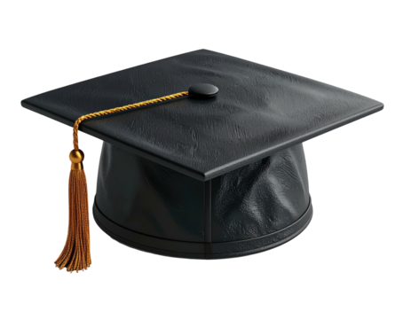 Black graduation cap isolated PNG, academic mortarboard with golden tassel for university or college ceremony on transparent background