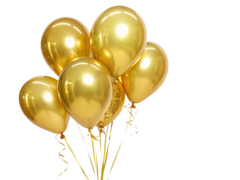 Gold ribbon satin bow curly scroll png isolated on transparent background for Christmas, birthday and wedding card confetti design decoration