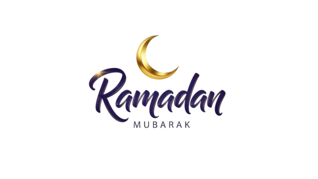 Ramadan mubarak greeting with golden crescent moon isolated on transparent background