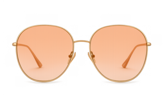 cheerful Golden Retriever wearing oversized orange sunglasses lounges comfortably, exuding playful and relaxed vibe. This adorable dog captures essence of fun and joy in sunny setting