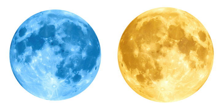 Full moon isolated, golden harvest and blue full moon set PNG