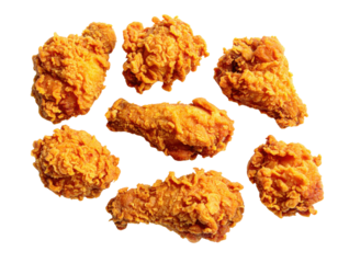 A delicious arrangement of crispy fried chicken pieces, showcasing a golden, crunchy texture.