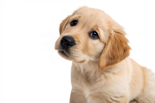 Adorable golden retriever puppy portrait looking isolated on the transparent background