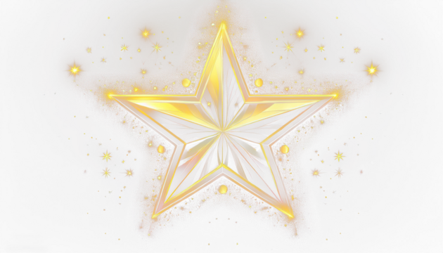 Golden Glitter Star Tree Topper with Sparkling Texture, Front-Facing View, Isolated PNG,And transparent the background.