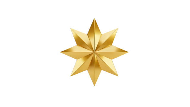Glimmering golden star spreading luminous rays, symbolizing festive holiday spirit against transparent backdrop