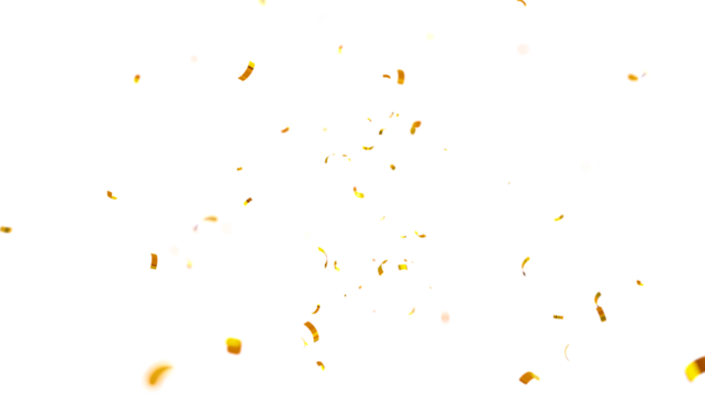 Falling isolated Gold Confetti. Glitter celebration PNG, Falling shiny gold confetti overlay on transparent background. 3d Rendering Transparent Confeti. Glossy golden festive tinsel. party, holiday,