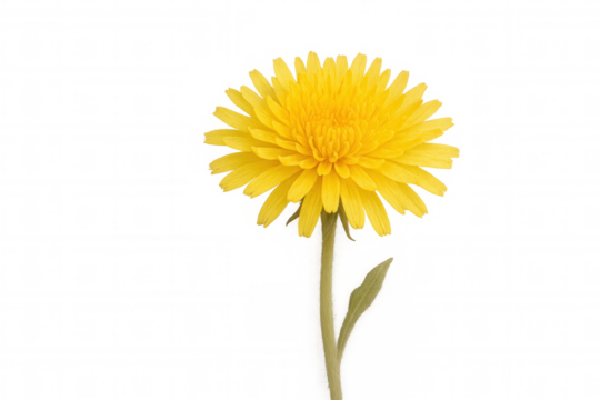 Yellow flower blooming, delicate stem emerging against transparent backdrop, vibrant golden petals unfolding