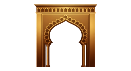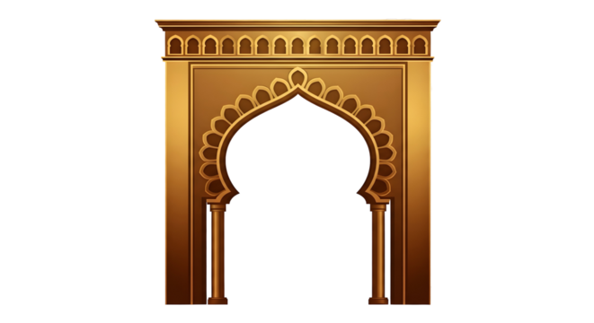 Ornate golden archway with intricate patterns and layered design, isolated on a white background.