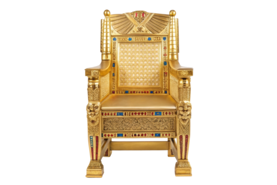 PNG Ancient egyptian golden throne with ornate hieroglyphs and jewel inlays